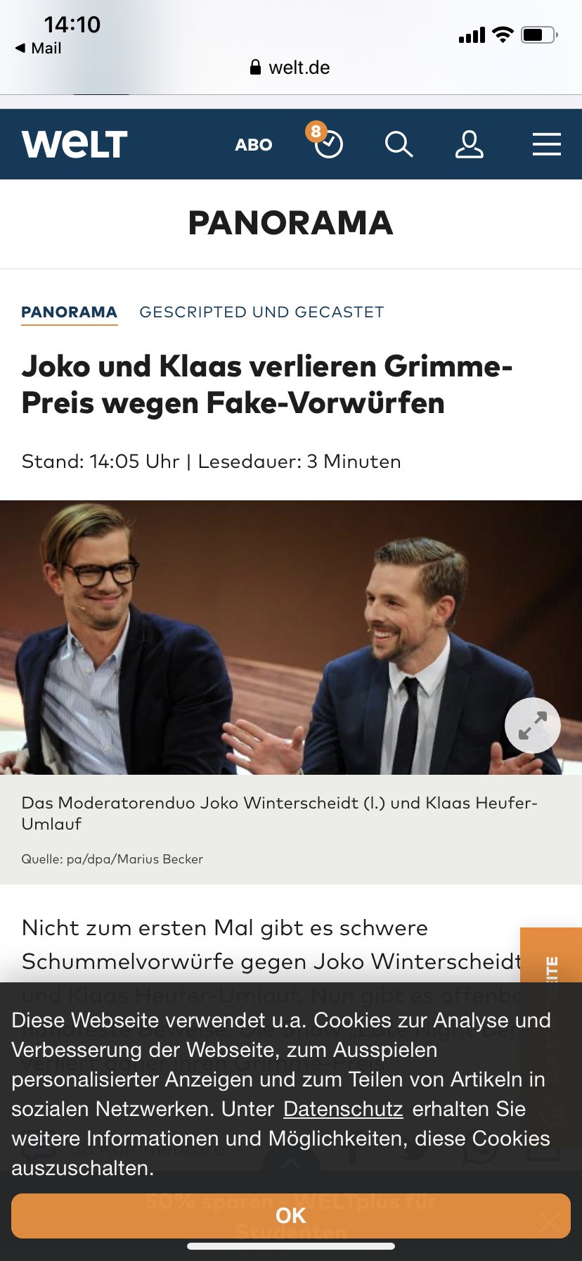 Freunde von joko winterscheidt und klaas. Natürlich waren wir auch beim grimme preis 2018 in marl. In den wettbewerbskategorien fiktion, information & kultur, unterhaltung sowie kinder & jugend werden 2020 16 produktionen mit. Sie räumten elf der zwölf auszeichnungen ab. Und joko und klaas reagierten prompt mit gewohntem charme und einer prise humor auf ihren preis in der kategorie unterhaltung.